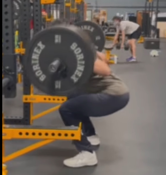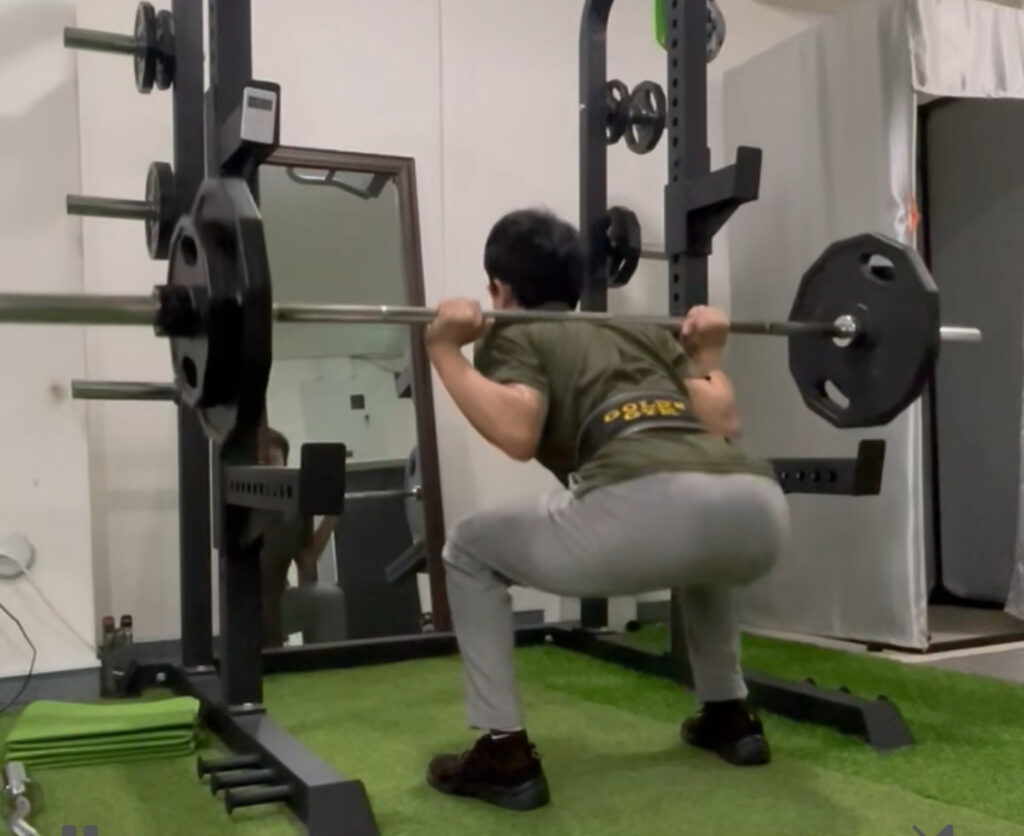 中でも最も多くやっているのがスクワットです。ボディビルの方々がやるような大腿四頭筋(前もも)に効かせるようなやり方ではなく、大臀筋(お尻)に効かせるいわゆるボックススクワットです。